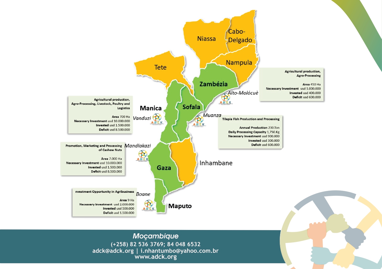 Outra área de intervenção transversal da ADCK é Educação Financeira às Comunidades Rurais Descentralizados, de treinamento e assessoria às agências de desenvolvimento, OBCs, Associações, Singulares e instituições públicas em metodologia participativa para criação de associações e cooperativas.